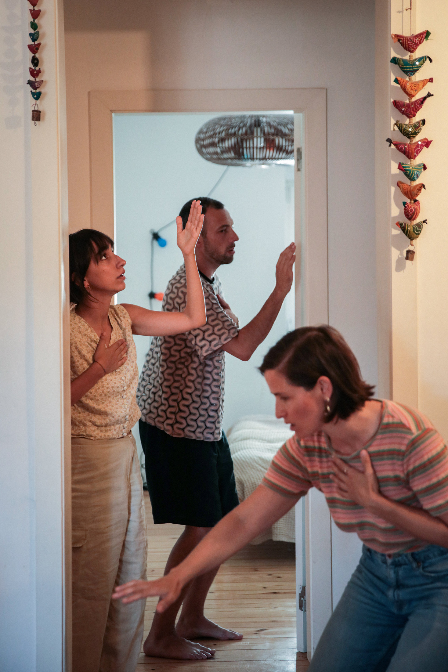 Em cada casa transformada em território ritual, convocam-se as forças contraditórias do cuidado e da violência, os ecos dos antepassados, o amor como um estado que (se) transforma, e os sonhos por vir. Cada sessão é construída como um espaço de prática e de partilha de histórias contadas, palavras de luta, gestos oraculares, oferendas afetivas e danças silenciosas que atravessam o visível e o invisível.