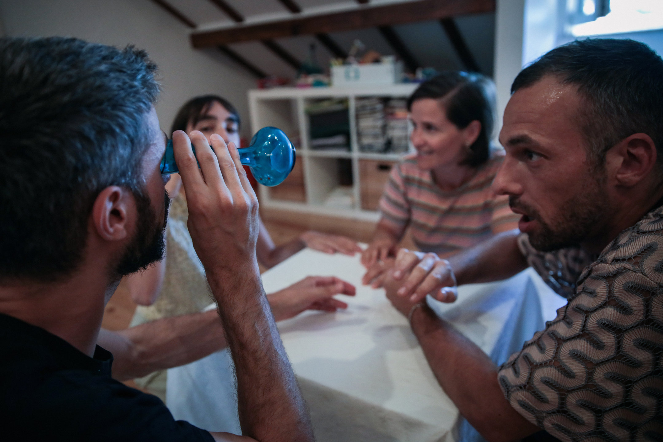 "Quando os Anjos Falam de Amor" é uma performance-ritual que transforma a intimidade num gesto político de escuta e reparação. Inspirada nos Caça-Fantasmas, uma equipa de artistas-performers visita famílias e constelações afetivas para invocar as presenças invisíveis que habitam o tecido da intimidade - lutos, legados e desejos de amor.